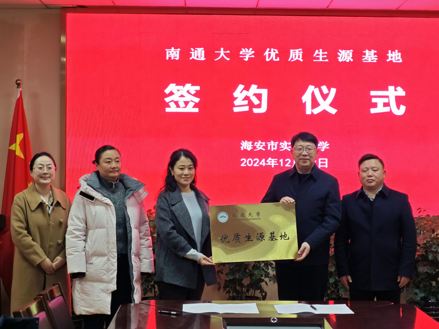 赵欣对海安市实验中学向我校长期以来输送优质生源表示衷心感谢,并重点介绍了医学等特色专业的办学情况,解读了南通大学的综合评价招生政策,欢迎并鼓励海安市实验中学的优秀学子积极报考。她期待双方能进一步加深交流协作,齐心协力促使办学水平和教育教学质量实现新的跨越与提升。会上,赵欣向海安市实验中学授牌,并代表南通大学与海安市实验中学签署了《优质生源基地建设协议书》。