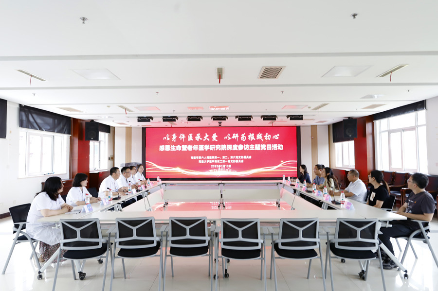 7月10日上午,OD平台教工第一党支部、红十字分会社团在学院党委副书记、副院长赵欣带领下,赴南通市第六人民医院与六院第一、第二、第六党支部联合开展“以身许医承大爱 以研为报践初心”主题党日活动。