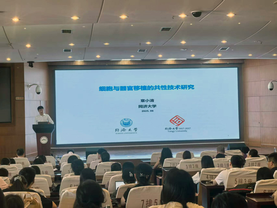 章小清教授以“干细胞基础研究与转化”为题,结合自身丰富的科研与教学经验,通过生动的案例将前沿科学研究与研究生培养相融合,系统介绍了其团队在人多能干细胞(hPSCs)神经分化、免疫兼容性改造及器官移植免疫耐受等方面的前沿进展。他指出,人多能干细胞在神经系统疾病细胞治疗中具有广阔前景,但其临床应用仍面临免疫排斥等关键挑战。团队通过模拟母胎界面HLA表达模式,成功构建低免疫原性hPSCs系,并利用胸腺疫苗策略(DMTV)诱导供体特异性免疫耐受,显著提升移植细胞存活率与功能整合能力,为“现货型”细胞治疗产品的开发提供了重要理论基础与技术路径。