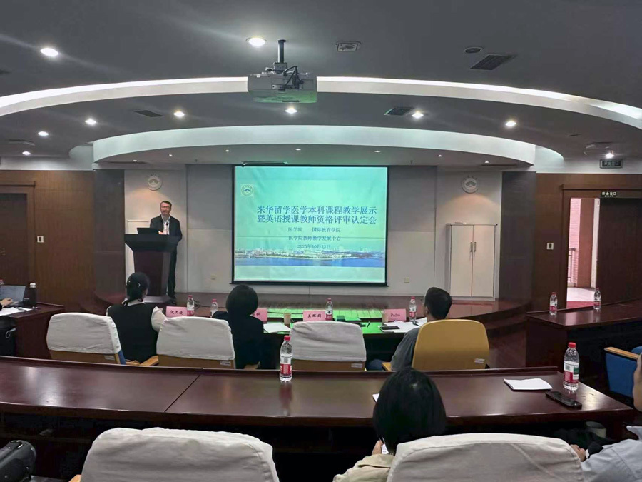 10月22日下午,学院在C5报告厅顺利举办了来华留学医学本科课程教学展示暨英语授课教师资格评审认定会。国际教育学院副院长陈俐、国际教育学院教学管理办公室副主任沈文捷以及外籍教师Pedro Laborda教授担任评审专家。